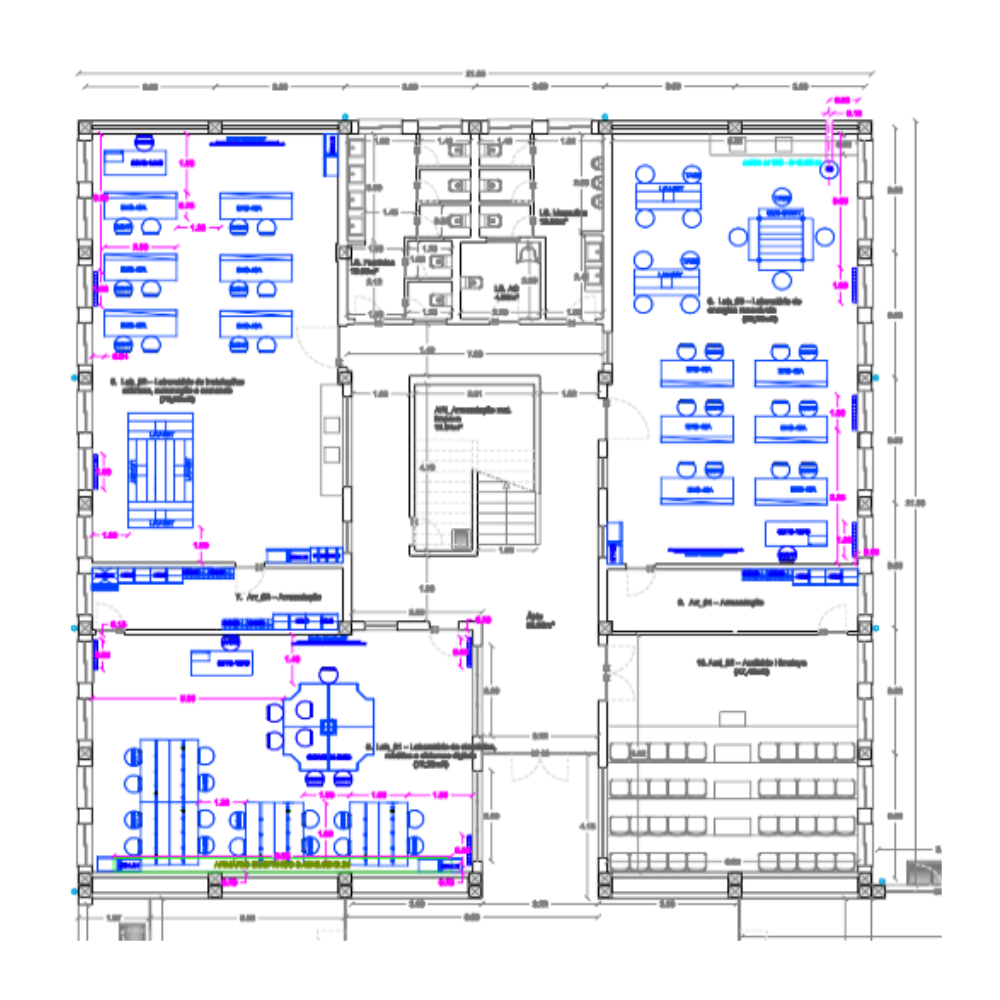 O Bloco 4 reúne os laboratórios tecnológicos e as áreas de conceção e desenvolvimento técnico, assegurando a articulação entre conhecimento científico, planeamento e implementação prática.