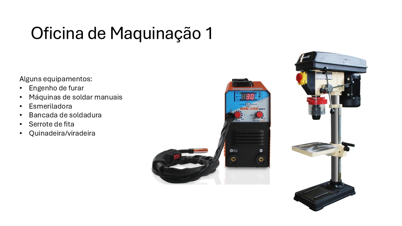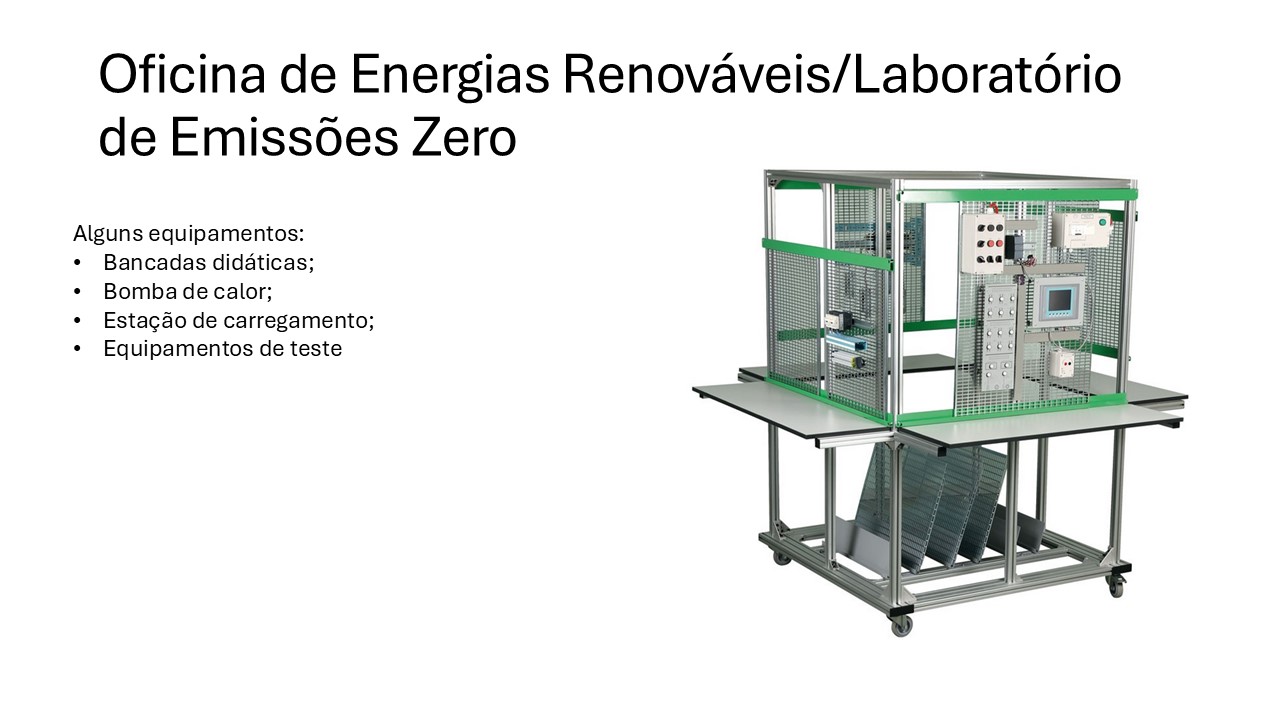 Integra a Oficina de Maquinação 1, dedicada à serralharia mecânica e aos fundamentos da transformação de materiais; a Oficina de Maquinação 2, equipada com centro de maquinagem CNC e sistema de extração, permitindo o desenvolvimento de competências em fabrico assistido por computador e controlo numérico; e a Oficina de Energias Renováveis / Emissões Zero, orientada para a instalação, análise e simulação de sistemas solares, eólicos e térmicos, com enfoque na eficiência energética e na sustentabilidade ambiental.