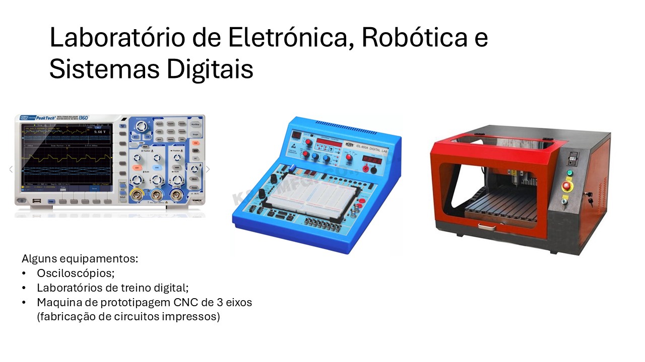 Inclui o Laboratório de Eletrónica, Robótica e Sistemas Digitais, dedicado ao desenvolvimento de circuitos, programação de sistemas embarcados e integração de soluções automatizadas; o Laboratório de Instalações Elétricas, ITED, Automação e Comando, vocacionado para a montagem, ensaio e controlo de sistemas elétricos e infraestruturas técnicas; o Laboratório de Energias Renováveis, centrado na análise, monitorização e otimização de sistemas energéticos sustentáveis; e o Laboratório de Desenho Técnico / CAD / CAM, espaço de conceção, modelação e preparação digital de projetos industriais.