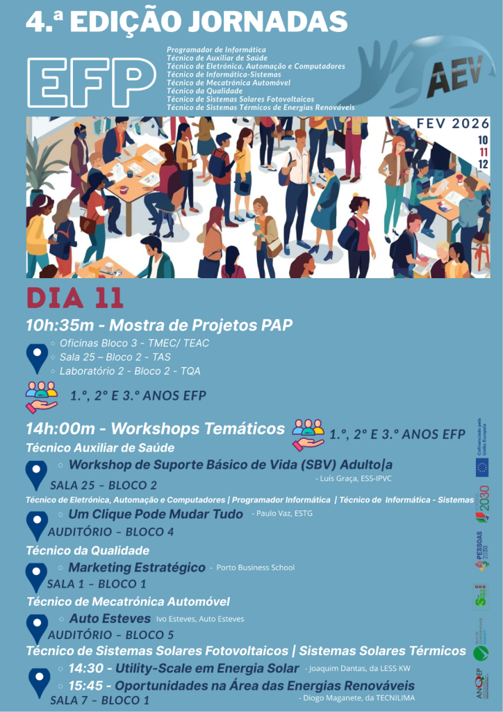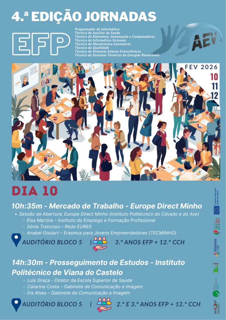 0Shares Nos dias 10, 11 e 12 de fevereiro, o Agrupamento de Escolas de Valdevez promove a 4.ª edição das Jornadas EFP, um evento dedicado ao Ensino e Formação Profissional (EFP), com um conjunto diversificado de atividades, palestras e workshops.